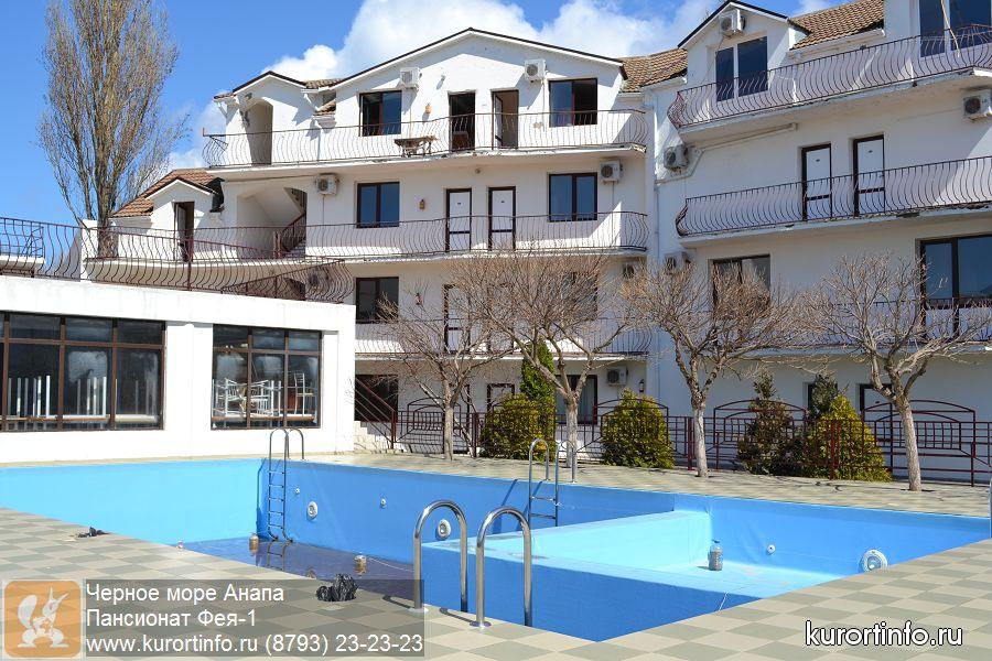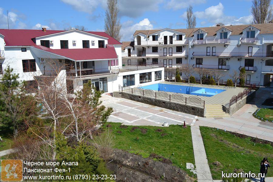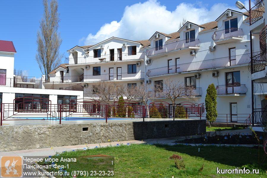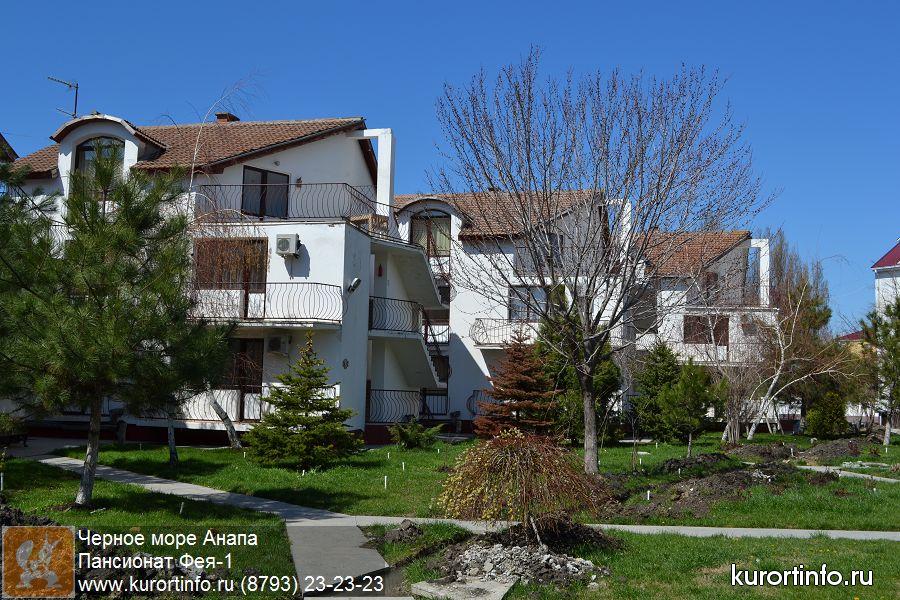 Пансионат «Фея-1» это хорошо благоустроенный коттеджный комплекс, расположенный на уютной зеленой территории, площадью более 0,5 га со скамейками и цветочными клумбами. Гости пансионата размещаются в одиннадцати 3,4-этажных коттеджах.