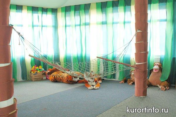 Инфраструктура комплекса задумана и построена с учетом максимального удобства размещения семей с детьми разного возраста. При размещении семей с детьми до 14 лет, предоставляются скидки. Для маленьких гостей пансионата проводятся различные культурно-развлекательные мероприятия, на территории есть детская комната, детское отделение в открытом бассейне, детская площадка.