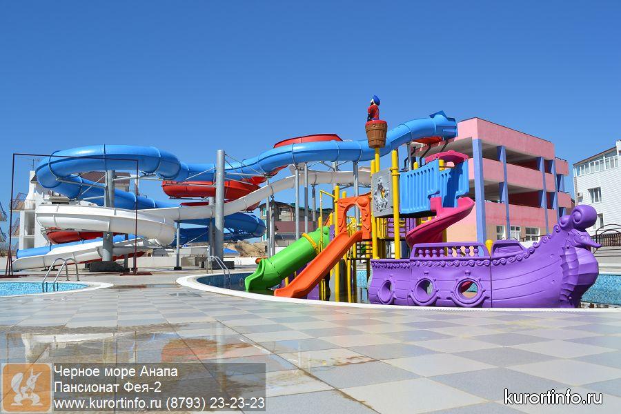 Гости пансионата «Фея-2» могут беспрепятственно пользоваться всей инфраструктурой пансионатов сети «Фея-1» и «Фея-3», на территории которых также есть бассейны и аттракционы.