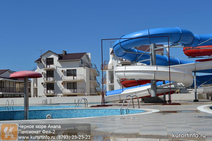 Пансионат пользуется большой популярностью среди отдыхающих с детьми, благодаря своей просторной зеленой территории, комплексу различных бассейнов, в том числе с горками. Гости пансионата «Феи-2» могут также пользоваться инфраструктурой пансионатов «Фея-1» и «Фея-3»