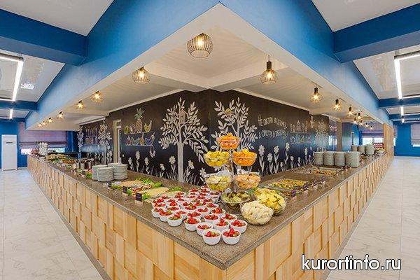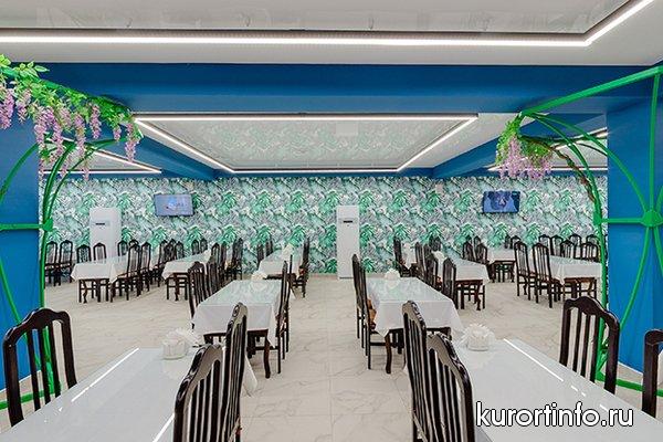 Питание в отеле осуществляется по системе «все включено», с разнообразным выбором блюд, кубанских овощей и фруктов, большим ассортиментом вин и пива местных производителей.