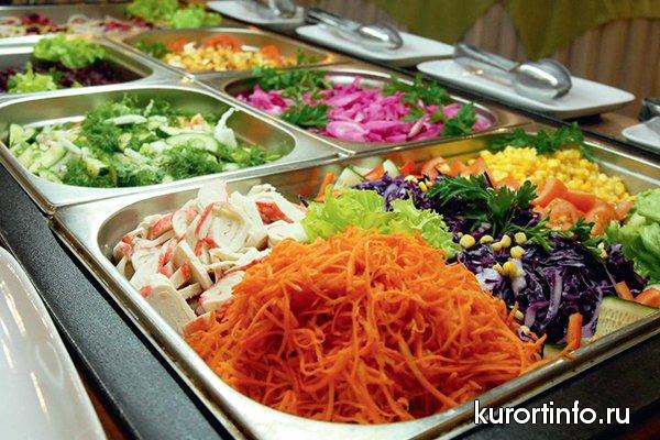 В ассортименте вкусные и полезные для здоровья блюда: холодные закуски, горячие рыбные, мясные и овощные блюда, домашняя выпечка и напитки. Проводятся дни национальных кухонь. Предусмотрено детское питание.