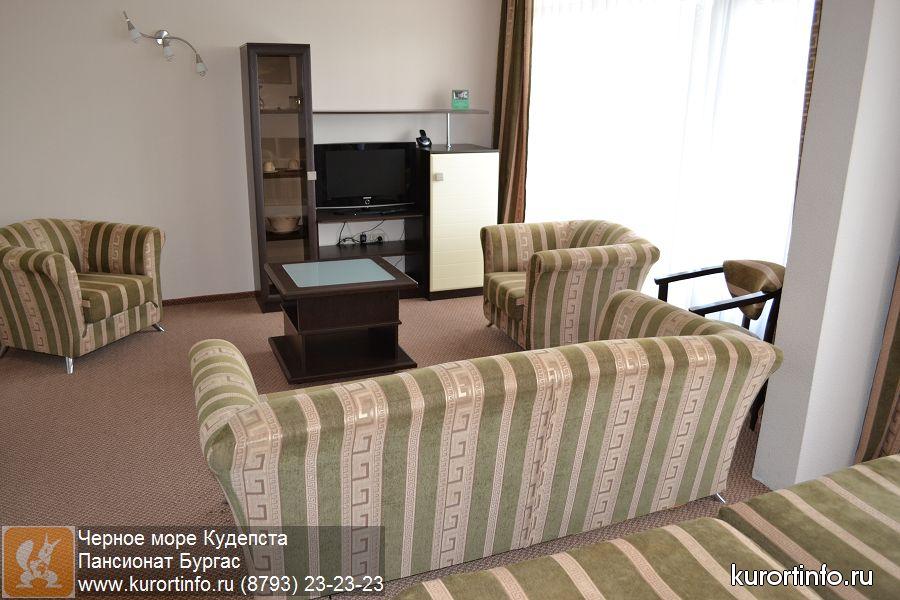 Пансионат «Бургас» представляет собой современный 3-х звездочный комплекс, который находится в Кудепсте - на границе Хостинского и Адлерского районов Большого Сочи.